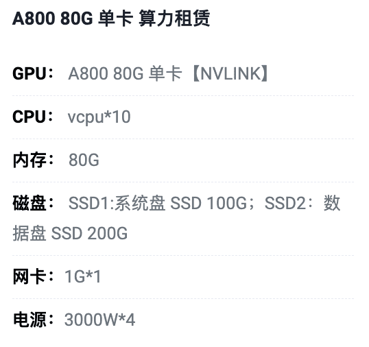 唐山A800-80G单卡租用价格