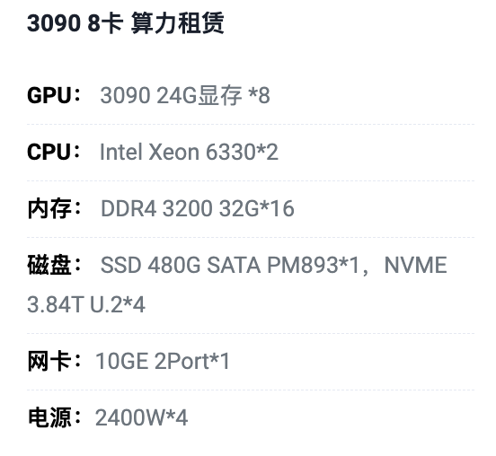 唐山3090八卡算力租用价格